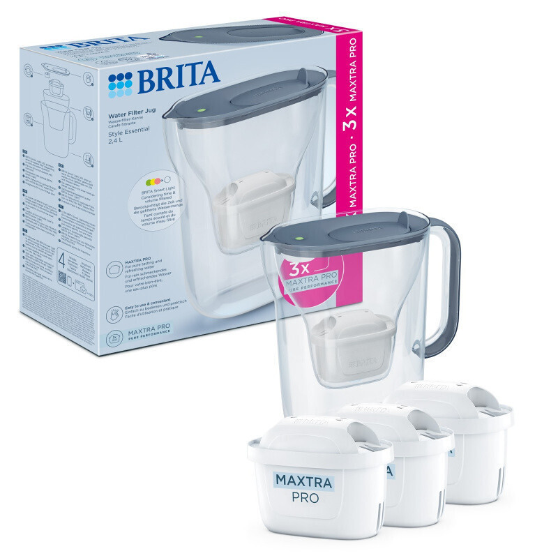 Η Brita Style Essential 2.4L μπλε-μαλακό γκρι + Πακέτο 3 φίλτρων MAXTRA PRO είναι μια καινοτόμος κανάτα φιλτραρίσματος νερού, σχεδιασμένη για να ενισχύει την εμπειρία καθαρισμού νερού στο σπίτι. Με γενναιόδωρη χωρητικότητα 2.4 λίτρων, αυτή η κανάτα είναι όχι μόνο λειτουργική αλλά και καλαίσθητη με έναν όμορφο συνδυασμό μπλε και μαλακού γκρι χρώματος.