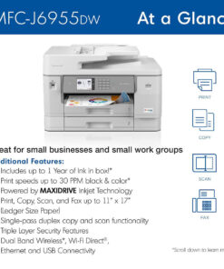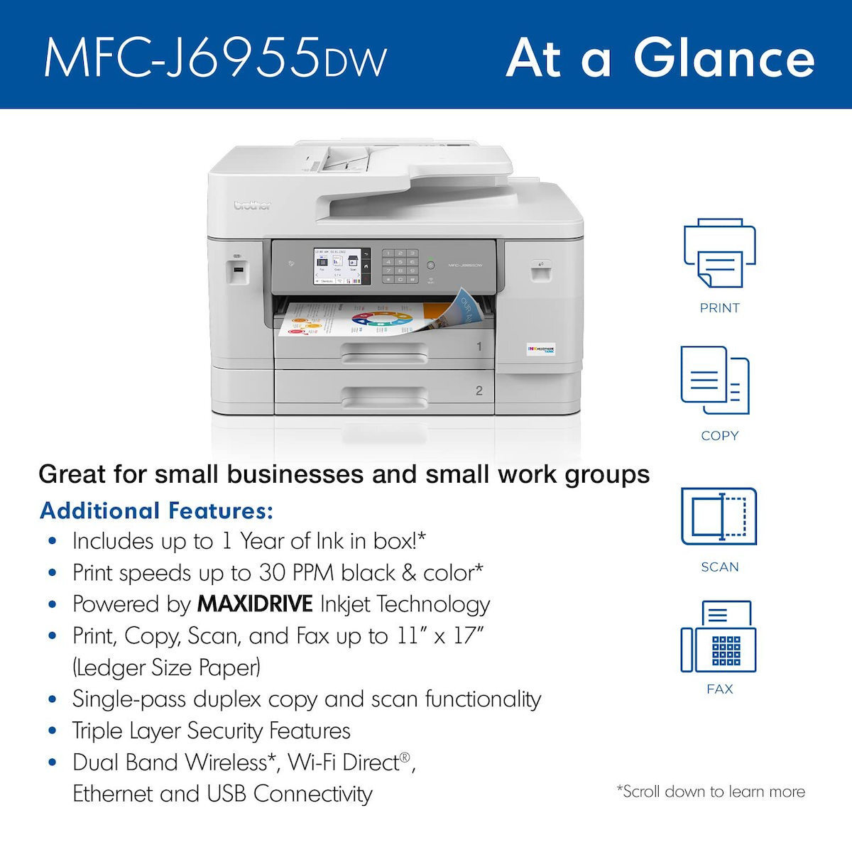 Ο εκτυπωτής MFC-J6955DW της εταιρίας Brother απευθύνεται σε μικρές και μεσαίες επιχειρήσεις και γραφεία που έχουν ανάγκη από ένα πολυλειτουργικό εκτυπωτή που μπορεί να εκτυπώσει, να αντιγράψει, να σκανάρει και να στείλει Fax.