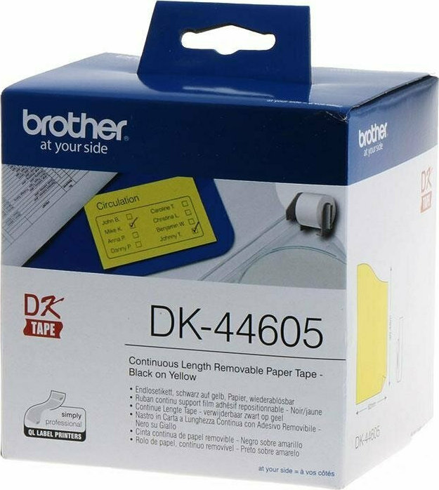 Ταινίες ετικετογράφου Brother DK-44605 Continuous Removable Yellow Paper Tape. Διαστάσεις: 62 mm x 30.48 m. Χρώμα: Κίτρινο. Κατηγορία: DK.