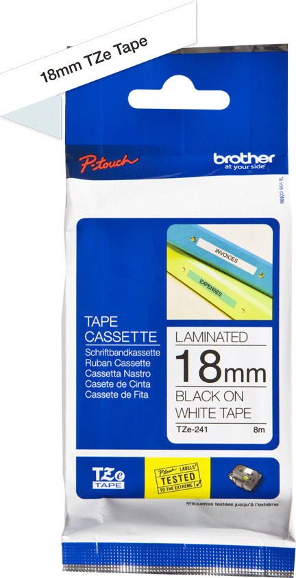 Οι αυτοκόλλητες laminate ετικέτες έχουν αναπτυχθεί για να αντέχουν σε ακραίες θερμοκρασίες και είναι ανθεκτικές σε χημικά, φθορά, ηλιακό φως και υποβρύχια εκθέσεις, καθιστώντας τις κατάλληλες για εσωτερική και εξωτερική χρήση. Οι κασέτες ταινιών TZe εγκαθίστανται γρήγορα και εύκολα, και διατίθενται σε διάφορα πλάτη, χρώματα και υλικά, εξασφαλίζοντας ότι η μηχανή P-touch καλύπτει όλες τις ανάγκες σας για ετικετογράφηση.