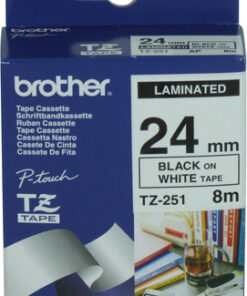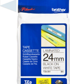 Ταινία ετικετογράφου Brother TZe-251, κατάλληλη για ετικέτες με μαύρο κείμενο σε λευκό φόντο. Έχει πλάτος 24mm.