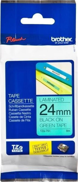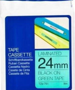 Η γνήσια κασετίνα ταινίας ετικετογράφου Brother TZe-751 προσφέρει καθαρές, ευκρινείς και εύκολα αναγνώσιμες ετικέτες. Είναι ιδανική για χρήση στο σπίτι, στο γραφείο ή σε επαγγελματικούς χώρους. Αυτή η ταινία ετικετογράφου, με μαύρη εκτύπωση σε πράσινο φόντο, μπορεί να χρησιμοποιηθεί για να προσδιορίσει περιεχόμενα όπως φακέλους, ράφια, USB flash drives και καλώδια. Οι αυτοκόλλητες, Laminated ετικέτες σχεδιάστηκαν για να αντέχουν σε ακραίες θερμοκρασίες και είναι ανθεκτικές σε χημικά, φθορά, ηλιακό φως και υποβρύχια χρήση, καθιστώντας τις κατάλληλες για εσωτερικούς και εξωτερικούς χώρους. Οι κασέτες ταινιών TZe εγκαθίστανται γρήγορα και εύκολα και διατίθενται σε διάφορες πλάτες, χρώματα και υλικά, καλύπτοντας όλες τις ανάγκες σας για ετικετογράφηση.