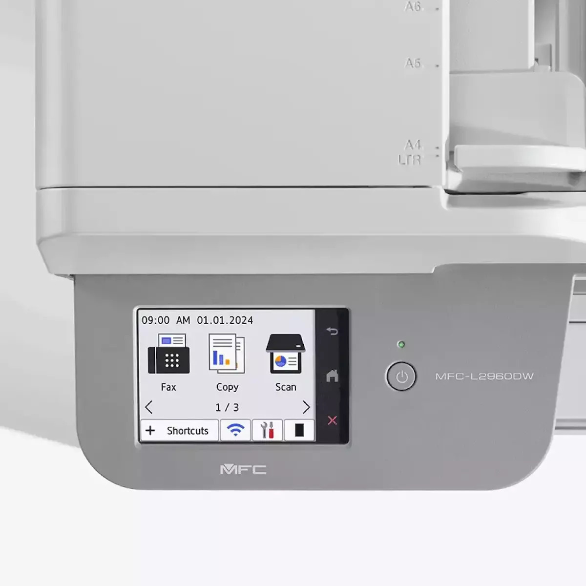 Ο εκτυπωτής πολλαπλών λειτουργιών Brother MFC-L2960DW είναι ιδανικός τόσο για επαγγελματίες του γραφείου στο σπίτι όσο και για μικρές επιχειρήσεις και είναι ταυτόχρονα συμπαγής και ισχυρός. Αυτός ο μονόχρωμος εκτυπωτής λέιζερ προσφέρει ταχύτητες εκτύπωσης έως και 34 σελίδες ανά λεπτό και αυτόματη εκτύπωση διπλής όψης (έως και 16 πλευρές ανά λεπτό). Για να διευκολύνει την καθημερινή σας διαχείριση, διαθέτει εσωτερική μνήμη 256 MB και έγχρωμη οθόνη αφής 8,8 cm. Για να είστε πάντα πιο αποδοτικοί, προσφέρει ένα ευρύ φάσμα επιλογών συνδεσιμότητας: USB, Ethernet και Wi-Fi. Δώστε στην επιχείρησή σας μεγαλύτερη παραγωγικότητα με αυτόν τον αξιόπιστο και ανθεκτικό εκτυπωτή, ο οποίος φροντίζει για τη μείωση του κόστους εκτύπωσης.