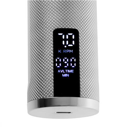 Η οθόνη LCD εμφανίζει το ποσοστό φόρτισης της μπαταρίας και την ταχύτητα περιστροφής, ρυθμιζόμενη από 6000 έως 7000 rpm.