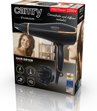 Το πιστολάκι μαλλιών CAMRY CR 2255 είναι ιδανικό για εκείνους που προσέχουν τα μαλλιά τους. Διαθέτει ρυθμιστές για τη δύναμη εμφύσησης και τη θερμοκρασία, καθώς και λειτουργία κρύου αέρα για τη γρήγορη κλείδωση των πετσικών των μαλλιών. Στο σετ περιλαμβάνονται διαχύτης και συμπυκνωτής για καλύτερη μοντελοποίηση.
