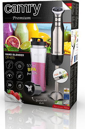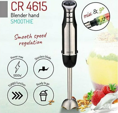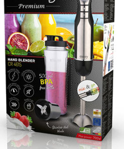 Το CR 4615 μπλέντερ χειρός είναι ιδανικό για εύκολη προετοιμασία υγιεινής τροφής. Λειτουργεί τόσο ως παραδοσιακό, όσο και ως προσωπικό μπλέντερ, ιδανικό για την παρασκευή smoothie. Είναι εξοπλισμένο με μπουκάλι νερού 500ml με καπάκι, ιδανικό για να παίρνετε το γεύμα σας παντού.