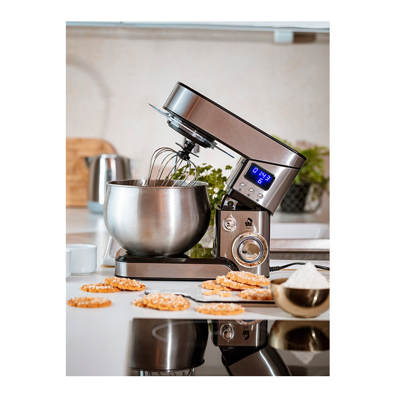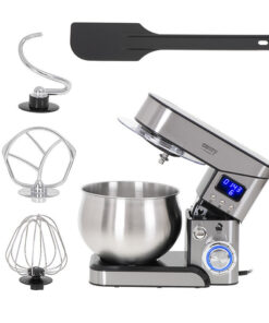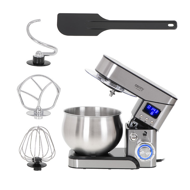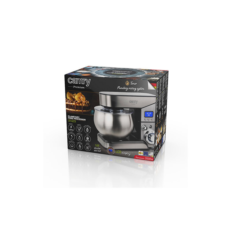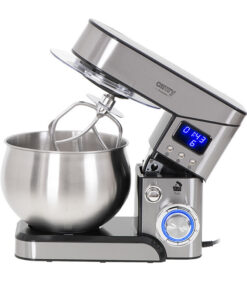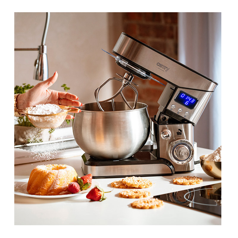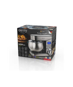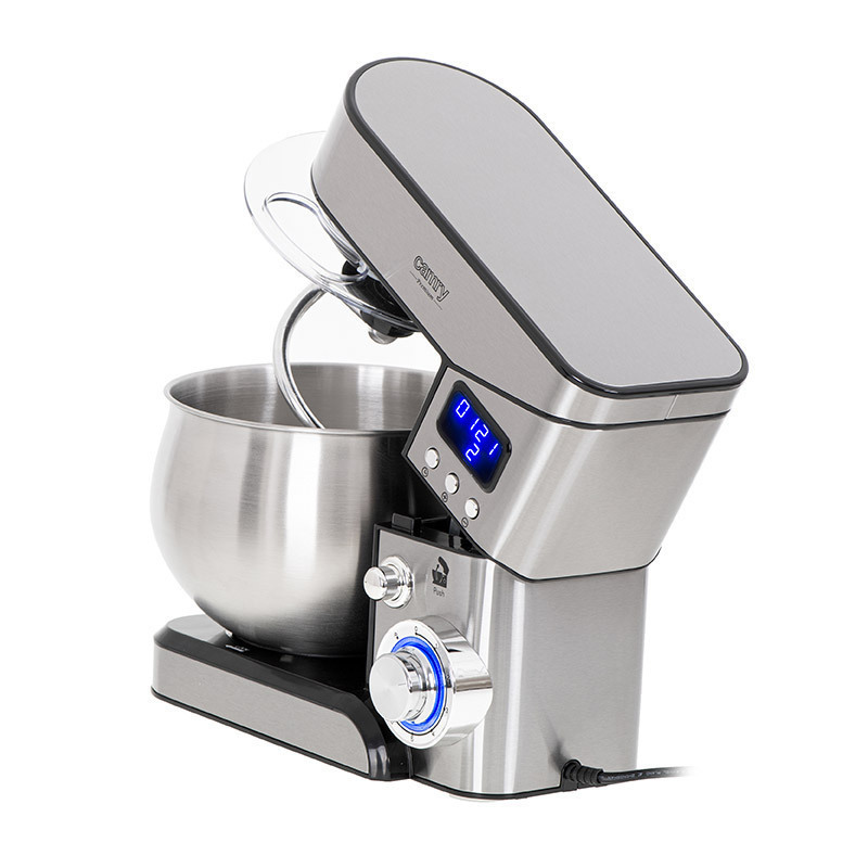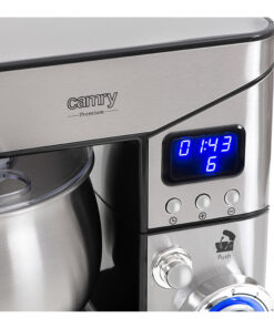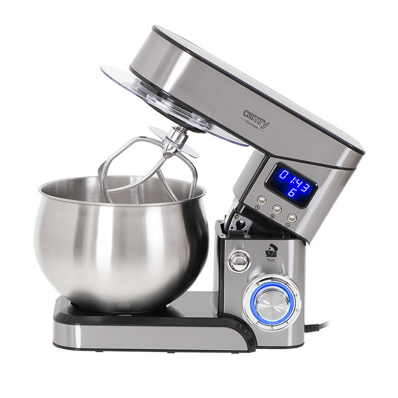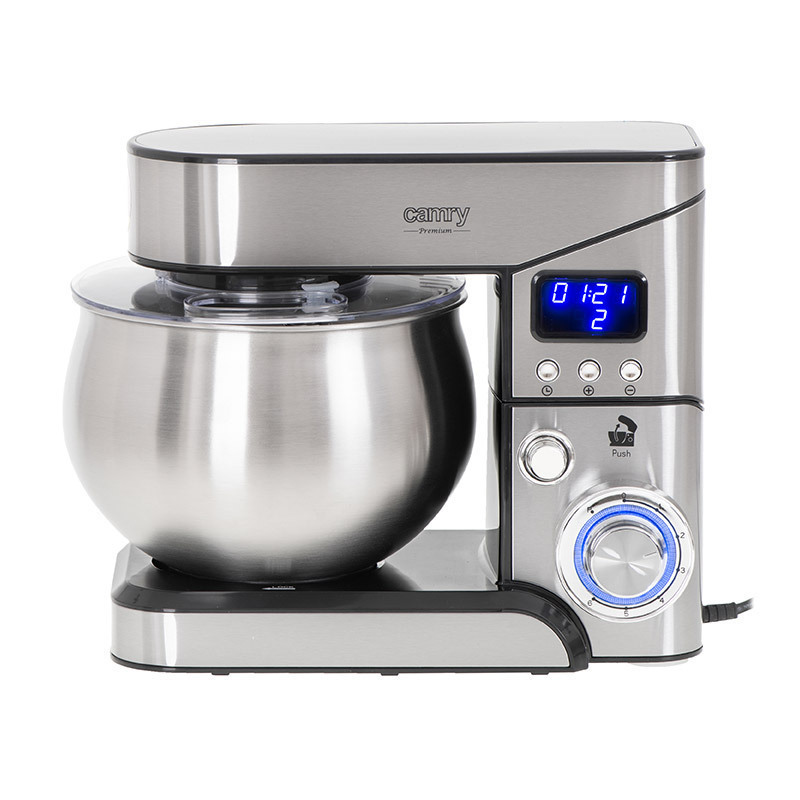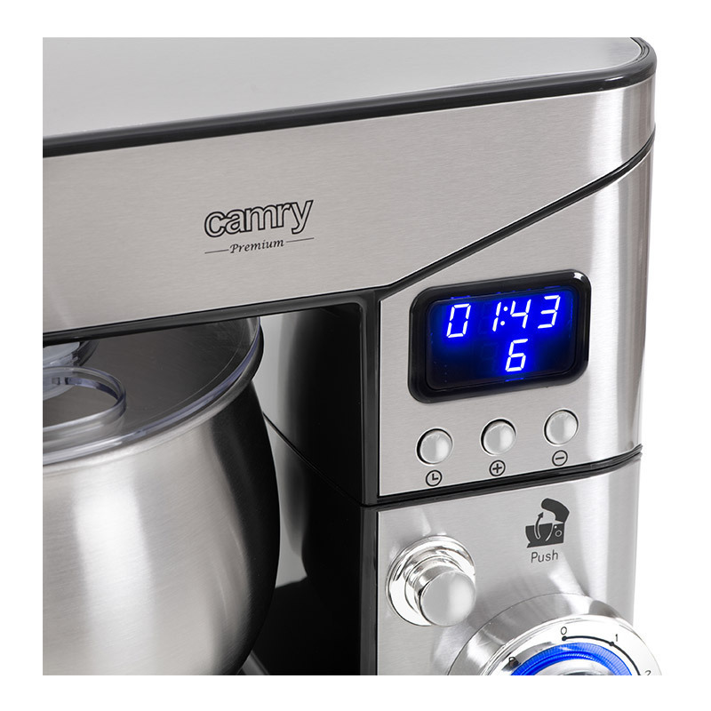 Η κουζινομηχανή, από την εταιρία Camry, διαθέτει πανίσχυρο μοτέρ με μέγιστη ισχύ 2000 W, περιστροφικό και φωτιζόμενο κουμπί για τη ρύθμιση των ταχυτήτων από 1-6 επίπεδα, καθώς και λειτουργία Pulse. Με μεγάλο ανοξείδωτο κάδο 5 Lt, βραχίονα με κλίση για την εύκολη αφαίρεση των εξαρτημάτων, πλαστικό κάλυμμα για την αποφυγή των πιτσιλιών, ρύθμιση του χρόνου λειτουργίας από 30 sec. έως 30 λεπτά και LCD φωτιζόμενη οθόνη (εμφάνιση χρόνου και ταχύτητας).