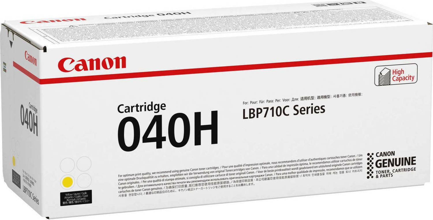 Η LBP712Cdn χρησιμοποιεί το γνήσιο τόνερ Canon, Καρτρίτζ 040 CMYK (Μαύρο αποδόσεις 6.300 σελίδες, CMY 5.400 σελίδες) και Καρτρίτζ 040 Υψηλής Χωρητικότητας CMYK (Μαύρο αποδόσεις 12.500 σελίδες, CMY 10.000 σελίδες), σύμφωνα με το πρότυπο ISO/IEC.