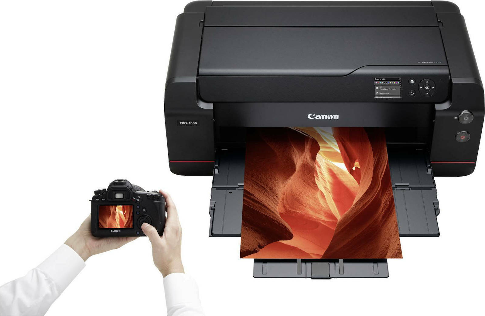 Εκτυπώστε με την απόλυτη αξιοπιστία και τις εντυπωσιακές λεπτομέρειες που προσφέρει ο εκτυπωτής ImagePrograf Pro-1000. Χάρη στο προηγμένο σύστημα 12 μελανιών για ευρύτερη γκάμα χρωμάτων και μια απρόσκοπτη ροή εργασιών εκτύπωσης σε όλη τη διάρκεια της διαδικασίας, από την είσοδο έως την έξοδο, μπορείτε να δίνετε ζωή σε όλες τις λήψεις σας.