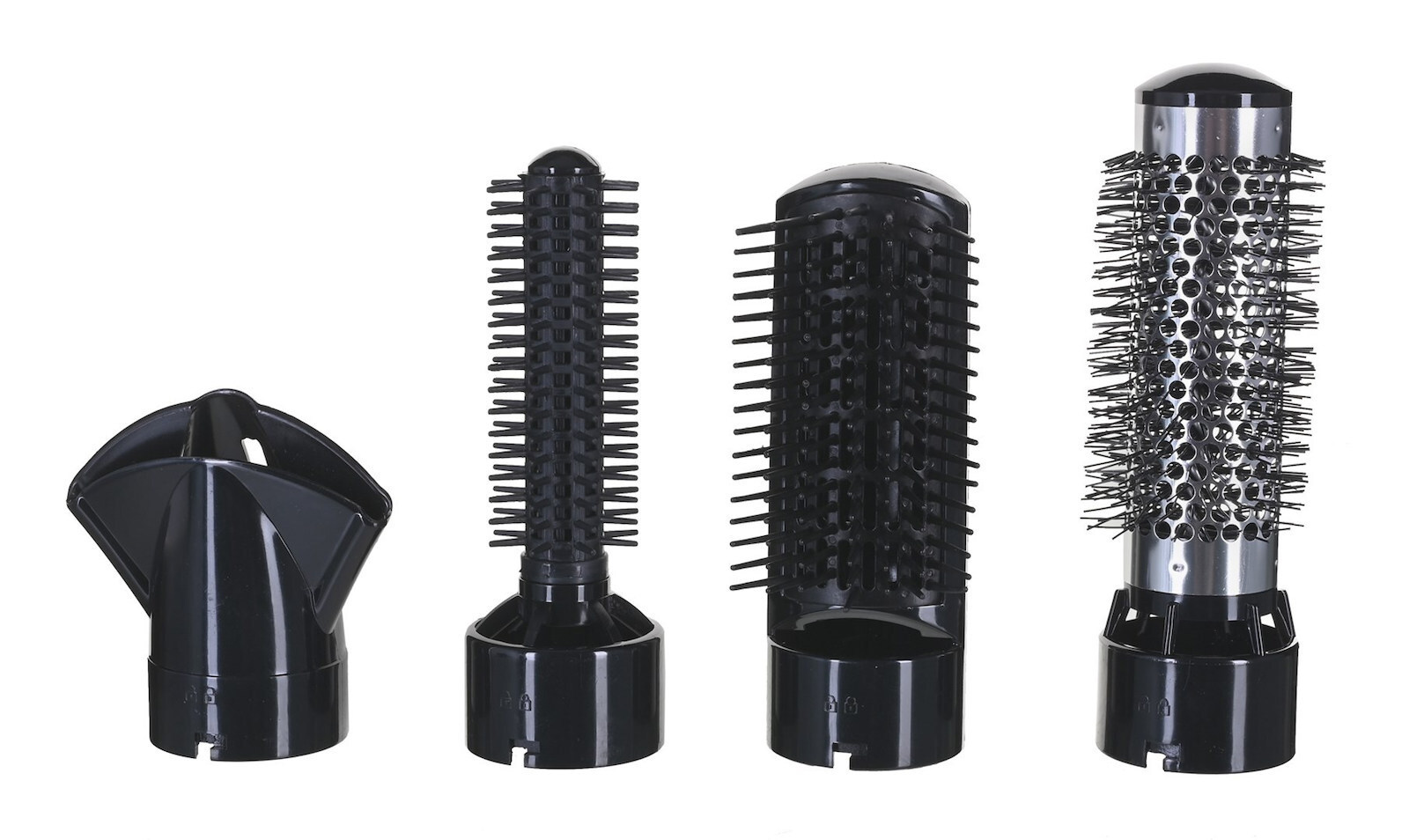 - Πολυλειτουργικό με 4 εξαρτήματα: μεγάλη διάμετρος βούρτσας 30 mm, μικρή διάμετρος βούρτσας 20 mm, επίπεδη βούρτσα και συμπυκνωτής.