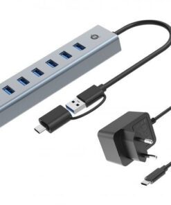Ο κονσόλας Conceptronic 7-Port USB 3.0 Hub με τροφοδοτικό, μοντέλο HUBBIES21GP, είναι μια πολυδιάστατη και αποδοτική συσκευή που σχεδιάστηκε για να επεκτείνει τη δυνατότητα USB-A ή USB-C του φορητού υπολογιστή ή του υπολογιστή σας. Είναι απαραίτητο για τους χρήστες που βασίζονται σε πολλαπλές συσκευές USB ταυτόχρονα.