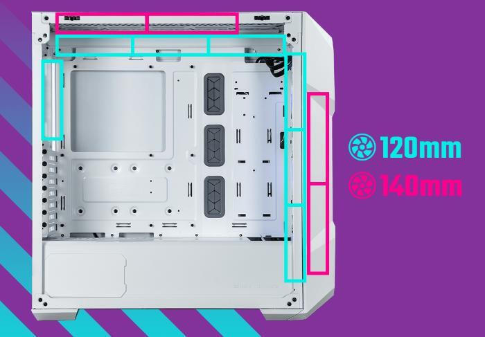 Υποστηρίζει έως και 7 ανεμιστήρες 120 χιλιοστών, και υδροψύξεις 360 χιλιοστών στο μπροστά και πάνω μέρος.