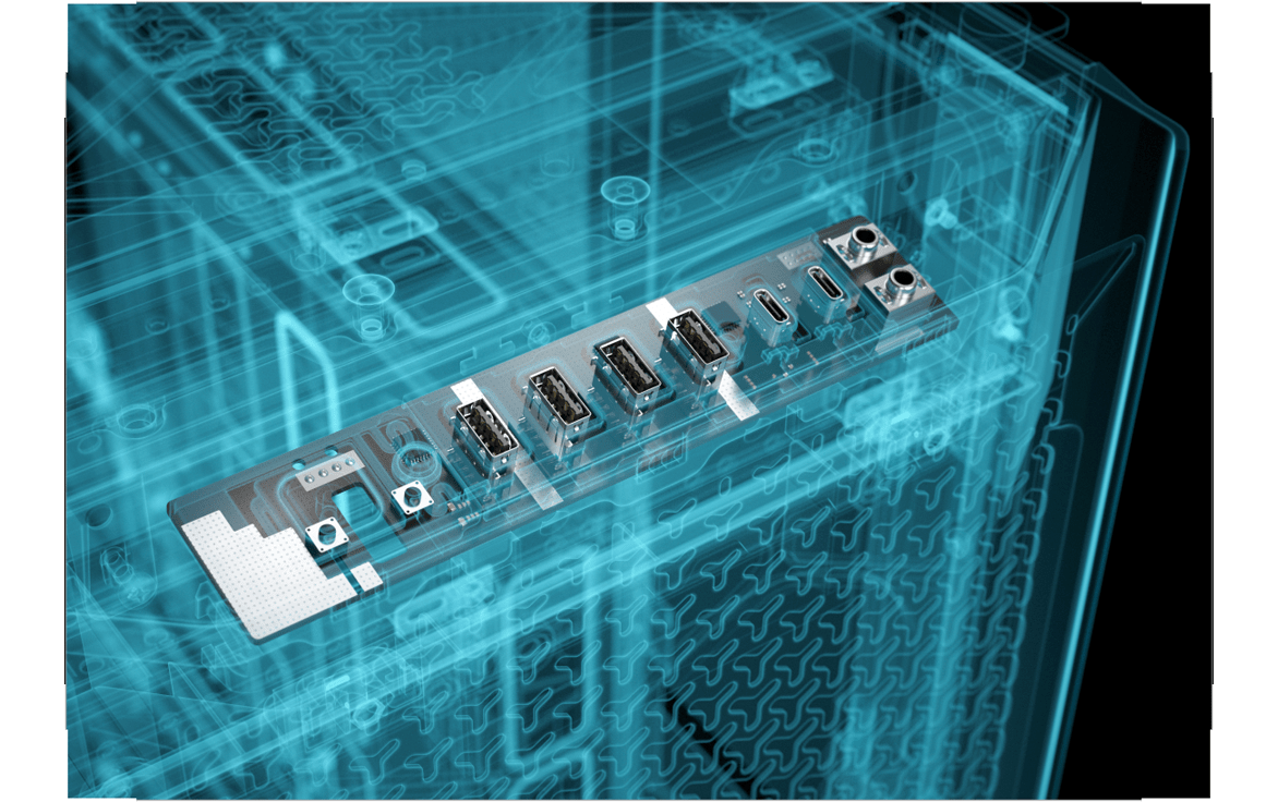Η πρόσοψη διαθέτει έναν ενσωματωμένο διανομέα USB Type-C που βελτιώνει τη συνδεσιμότητα και προσφέρει 2x θύρες USB 3.2 Gen 2 Type-C και 4x θύρες USB 3.2 Gen-1 Type-A.