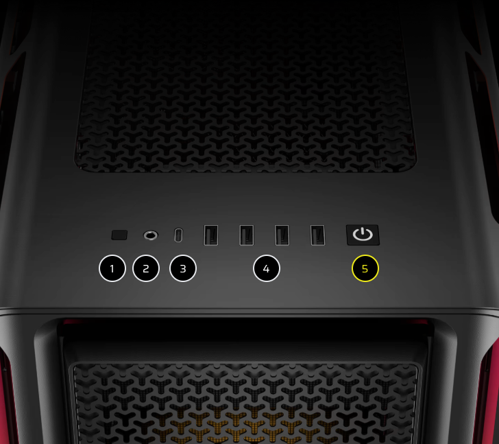 Τοποθετεί τις συνδέσεις σας σε κοντινή απόσταση, όπως μια θύρα USB 3.2 Gen 2 Type-C, 4x θύρες USB 3.2 Gen 1 Type-A και μια υποδοχή ήχου/μικροφώνου.