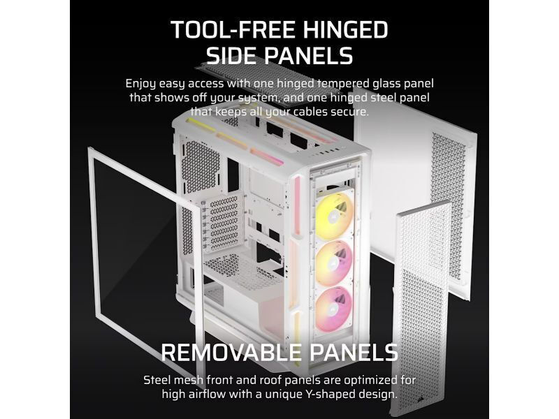 Απολαύστε εύκολη πρόσβαση με ένα ανοιγόμενο πάνελ από σκληρυμένο γυαλί που αναδεικνύει το σύστημά σας και ένα ανοιγόμενο χαλύβδινο πάνελ στην άλλη πλευρά.