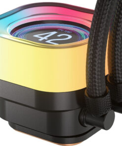 Η προσαρμοσμένη οθόνη LCD 2,1″ 480×480 μπορεί να ελεγχθεί μέσω της εφαρμογής iCUE, δίνοντάς σας τη δυνατότητα να επιλέξετε από 16,7 εκατομμύρια προσαρμοσμένα χρώματα ή να επιλέξετε από προκαθορισμένες κινούμενες εικόνες και οθόνες δεδομένων. Περιλαμβάνει πλήρη ενσωμάτωση GIPHY στην εφαρμογή, προσφέροντάς σας πρόσβαση σε χιλιάδες αγαπημένα memes και GIFs.