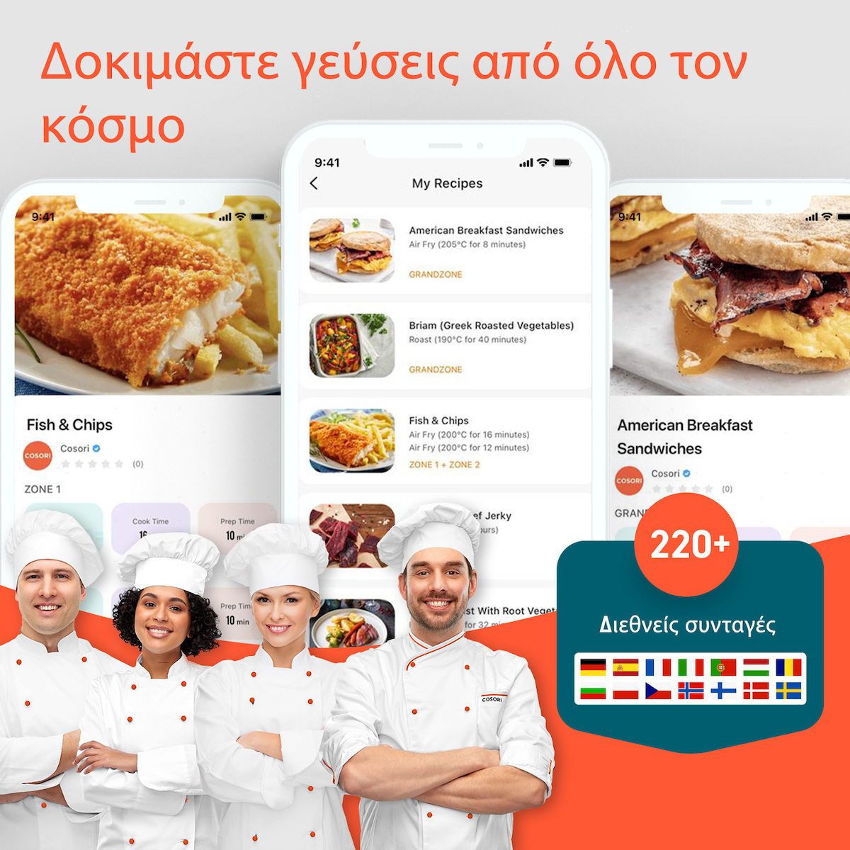 Δεν ξέρεις τι να φτιάξεις; Ρίξε μια ματιά στις εκατοντάδες εύκολες συνταγές από τους σεφ της Cosori! Από λαχταριστά ορεκτικά μέχρι γλυκά-έκπληξη, θα βρεις αυτό που ψάχνεις – και με το παραπάνω!
