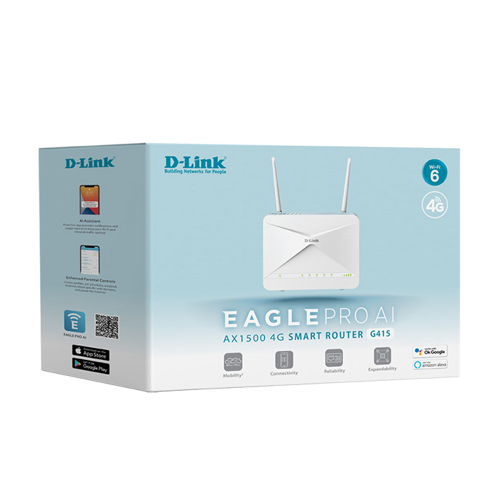 Το D-Link G415 Eagle Pro AI 4G είναι ένα προηγμένο 4G LTE router που συνδυάζει ισχυρή συνδεσιμότητα και έξυπνες λειτουργίες για οικιακή και επαγγελματική χρήση. Υποστηρίζει 4G LTE δίκτυα, παρέχοντας αξιόπιστη και γρήγορη πρόσβαση στο internet, ενώ διαθέτει dual-band Wi-Fi (2.4GHz και 5GHz) για ευέλικτη και σταθερή ασύρματη σύνδεση. Εξοπλισμένο με AI-based τεχνολογία Eagle Pro AI, βελτιστοποιεί αυτόματα τη ροή δεδομένων και τη διαχείριση του δικτύου για καλύτερη απόδοση. Διαθέτει επίσης θύρες LAN/WAN για ενσύρματη σύνδεση, ενώ η φιλική προς τον χρήστη εφαρμογή σας επιτρέπει να ρυθμίζετε και να διαχειρίζεστε εύκολα το δίκτυό σας. Είναι ιδανικό για περιοχές με περιορισμένη πρόσβαση σε ενσύρματο internet ή για όσους αναζητούν μια φορητή και αποδοτική λύση.