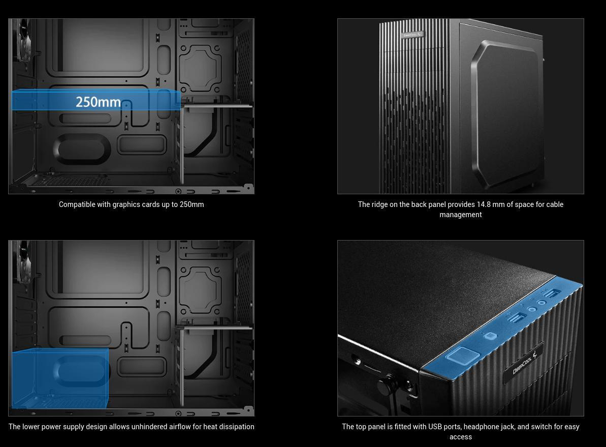 Διαθέτει συμαβτικό πλαϊνό μεταλικό πάνελ για office PCs και αφαιρούμενες θέσεις εγκατάστασης 5.25 και 3.5 ιντσών, παρέχοντας μεγάλες δυνατότητες DIY.