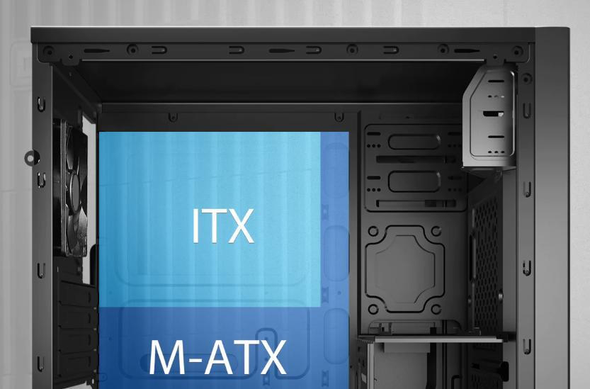 Η κλασική δομή M-ATX (διαστάσεις 420 x 201 x 365 mm) είναι συμβατή με μητρικές πλακέτες M-ATX και ITX