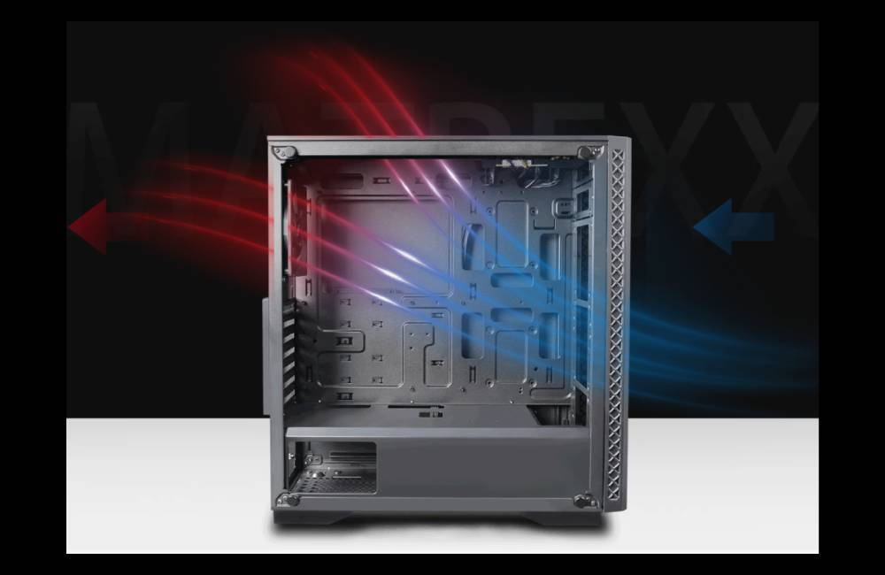 Η βελτιστοποιημένη ροή αέρα είναι εγγυημένη με δύο μεγάλες εισαγωγές αέρα στις δύο πλευρές της πρόσοψης και μια εξαγωγή αέρα στο πίσω μέρος και στην κορυφή, για να διατηρούνται τα εξαρτήματά σας δροσερά.