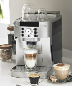 Αυτόματη καφετιέρα που τραβάει τα βλέμματα και προσθέτει μια κομψή, εκλεπτυσμένη πινελιά στην κουζίνα σας. Με ένα απλό πάτημα και περιστροφή του στρογγυλού διακόπτη ρυθμίζεται η επιθυμητή ποσότητα του καφέ και του νερού. Εξοπλισμένη με ακροφύσιο ατμού για να παρασκευάζει αφρόγαλα για Cappuccino & βάση θέρμανσης φλιτζανιών.