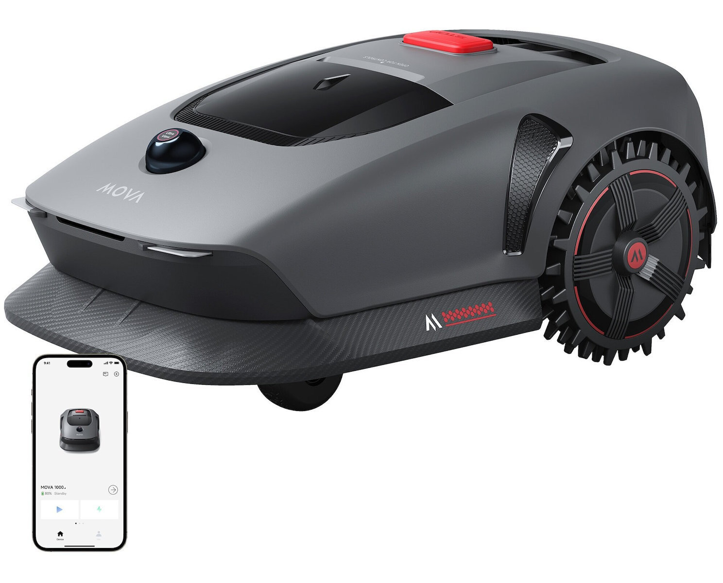 - Αποκλειστική εφαρμογή MOVAhome: Ρυθμίστε προγράμματα, ύψος κοπής και οριοθετήστε περιοχές απευθείας από το κινητό ή το tablet σας.