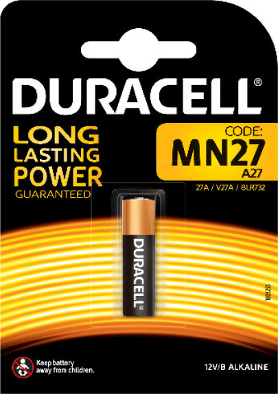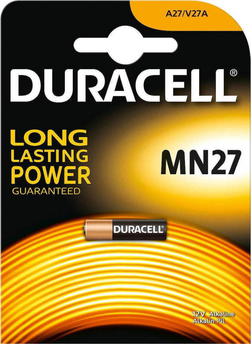Αλκαλικές μπαταρίες A27 της Duracell , κατάλληλες για χρήση σε φωτογραφικές μηχανές, τηλεχειριστήρια, αριθμομηχανές κι άλλες οικιακές συσκευές.