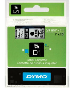 Ταινία εκτυπωτή DYMO Πλάτος 24 mm x Μαύρη εκτύπωση σε λευκή ταινία D1. Αναπτύχθηκε από την DYMO για γραφειακή, εργοστασιακή και λιανική χρήση. Η ταινία έχει μήκος 7 m και πλάτος 24 mm.