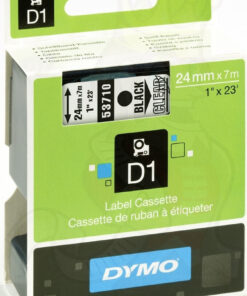Ταινία εκτυπωτή DYMO Πλάτος 24 mm x Μαύρη εκτύπωση σε λευκή ταινία D1. Αναπτύχθηκε από την DYMO για γραφειακή, εργοστασιακή και λιανική χρήση. Η ταινία έχει μήκος 7 m και πλάτος 24 mm.