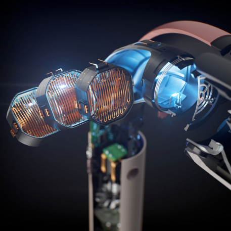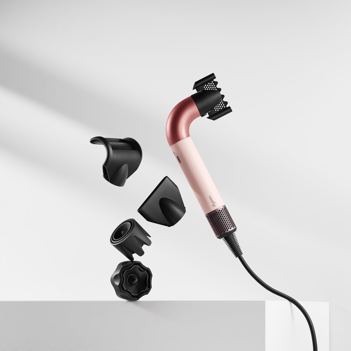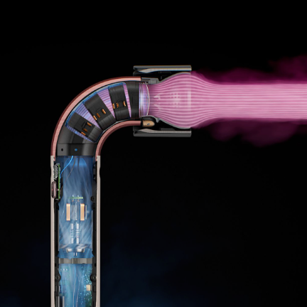 Ο κινητήρας Dyson Hyperdymium™ περιστρέφεται με έως και 110.000 στροφές/λεπτό, δημιουργώντας ισχυρή, ελεγχόμενη ροή αέρα. Ο αέρας διέρχεται από ένα εξαιρετικά αποδοτικό θερμαντικό στοιχείο με 10 θερμαντικές αντιστάσεις, τοποθετημένες στο καμπύλο τμήμα της συσκευής.