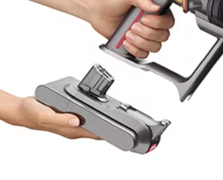 Η μπαταρία τύπου «click-in» αφαιρείται πανεύκολα και φορτίζεται όπως σε βολεύει — είτε πάνω στη σκούπα είτε μόνη της.