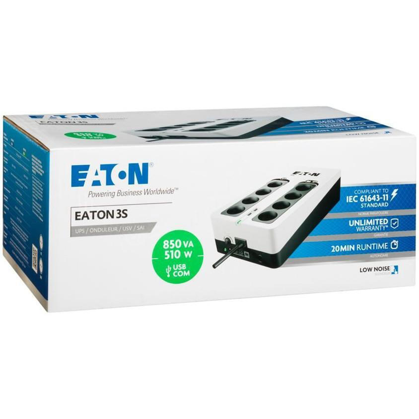 Τα κυκλώματα προστασίας από υπερτάσεις είναι συμβατά με το διεθνές πρότυπο IEC 61643-11. Το προστατευτικό υπερτάσεων Eaton 3S Gen2 ενσωματώνει επίσης σύνδεση RJ11/xDSL για την προστασία των πυλών Internet από διαταραχές μέσω της γραμμής δεδομένων.