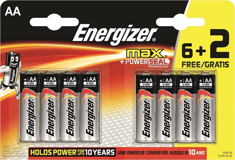 Αλκαλικές μπαταρίες μεγέθους ΑΑ, ιδανικές για τηλεχειριστήρια, φακούς κι άλλες οικιακές μικροσυσκευές.