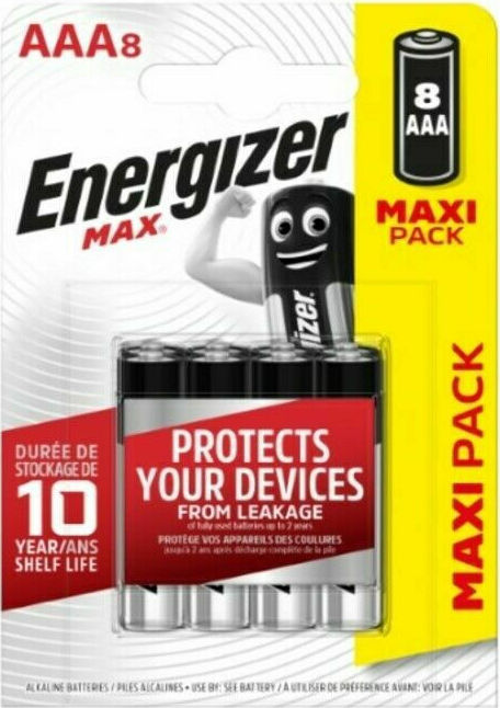 Αλκαλικές μπαταρίες μεγέθους AAA, ιδανικές για τηλεχειριστήρια, φακούς κι άλλες οικιακές μικροσυσκευές.