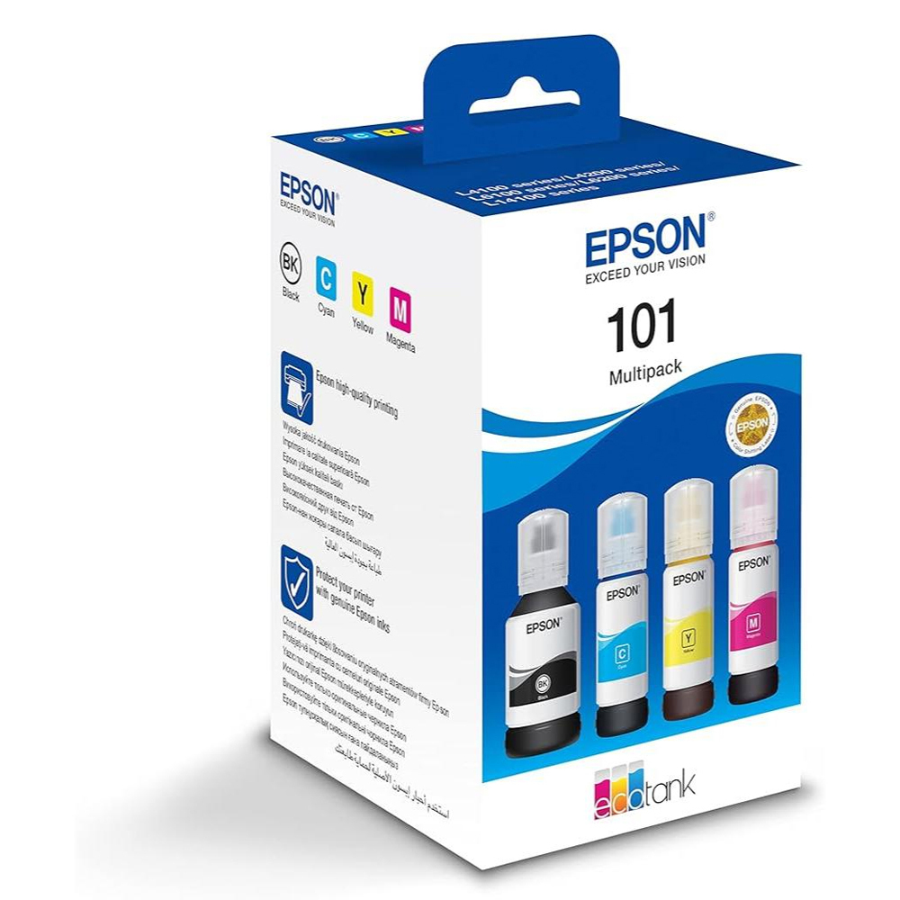 Πακέτο 4 μελανιών (μαύρο, κυανό, ματζέντα, κίτρινο) με χωρητικότητα στο μαύρο χρώμα να είναι 127ml και στα υπόλοιπα 70ml. Η νέα σειρά μελανιών Ecotank της EPSON, τεχνολογίας Inkjet , εξασφαλίζει εξαιρετική απόδοση χρωμάτων για καθημερινές εκτυπώσεις. Μονή συσκευασία, ιώδους μελανιού με περιεκτικότητα 70ml. Εξασφαλίζει έως και 7.500 σελίδες για το μαύρο χρώμα και 6000 για τα υπόλοιπα.