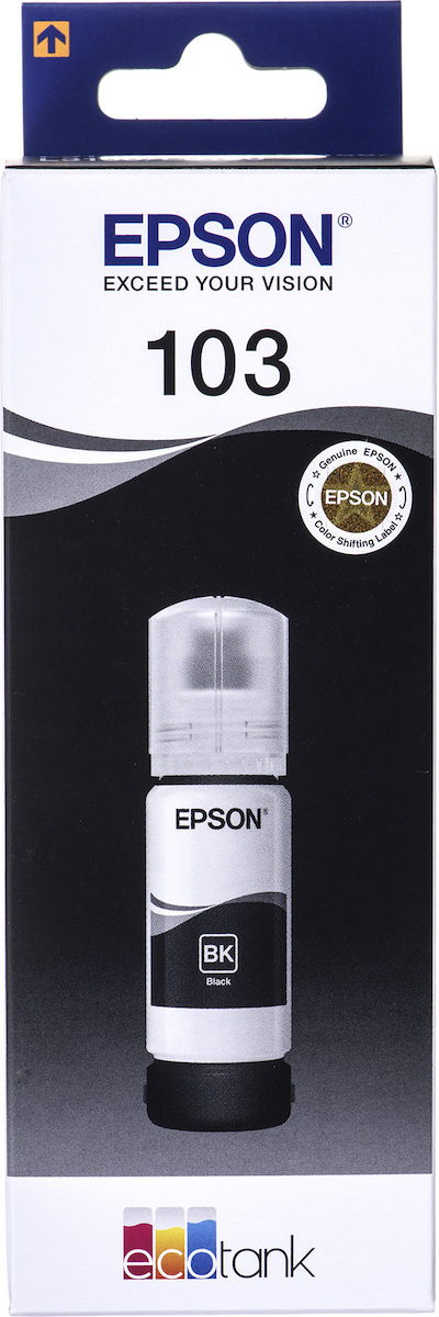 Δοχείο μελανιού 103 Ecotank από την Epson, τεχνολογίας Inkjet, κατάλληλο για τις καθημερινές σας εκτυπώσεις, με απόδοση έως και 4.500 σελίδες.