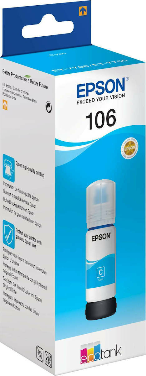 Epson 106 Γνήσιο Μελάνι Εκτυπωτή InkJet Κυανό (C13T00R240)