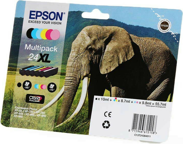 Αυθεντικό πακέτο μελανιών Epson 24XL. Εκτυπώστε κείμενα και παρουσιάσεις με την ποιότητα που προσφέρει η Epson.