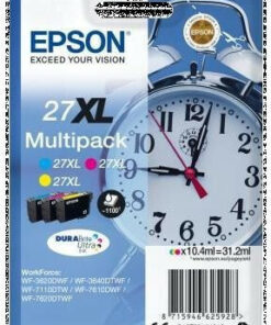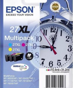 Συσκευασία 3 μελανιών τεχνολογίας DuraBrite της Epson, που περιέχει τα χρώματα: Cyan, Magenta & Yellow, με διάρκεια ζωής έως και 1.100 σελίδες εκτύπωσης.