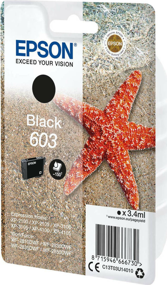 Μαύρο μελάνι τεχνολογίας Inkjet της Epson, με διάρκεια ζωής έως και 150 σελίδες εκτύπωσης.