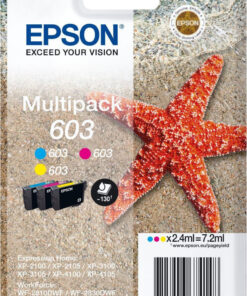 Πακέτο 3 μελανιών τεχνολογίας inkjet της EPSON που συνδυάζει τα: 603 Cyan, 603 Magenta & 603 Yellow.