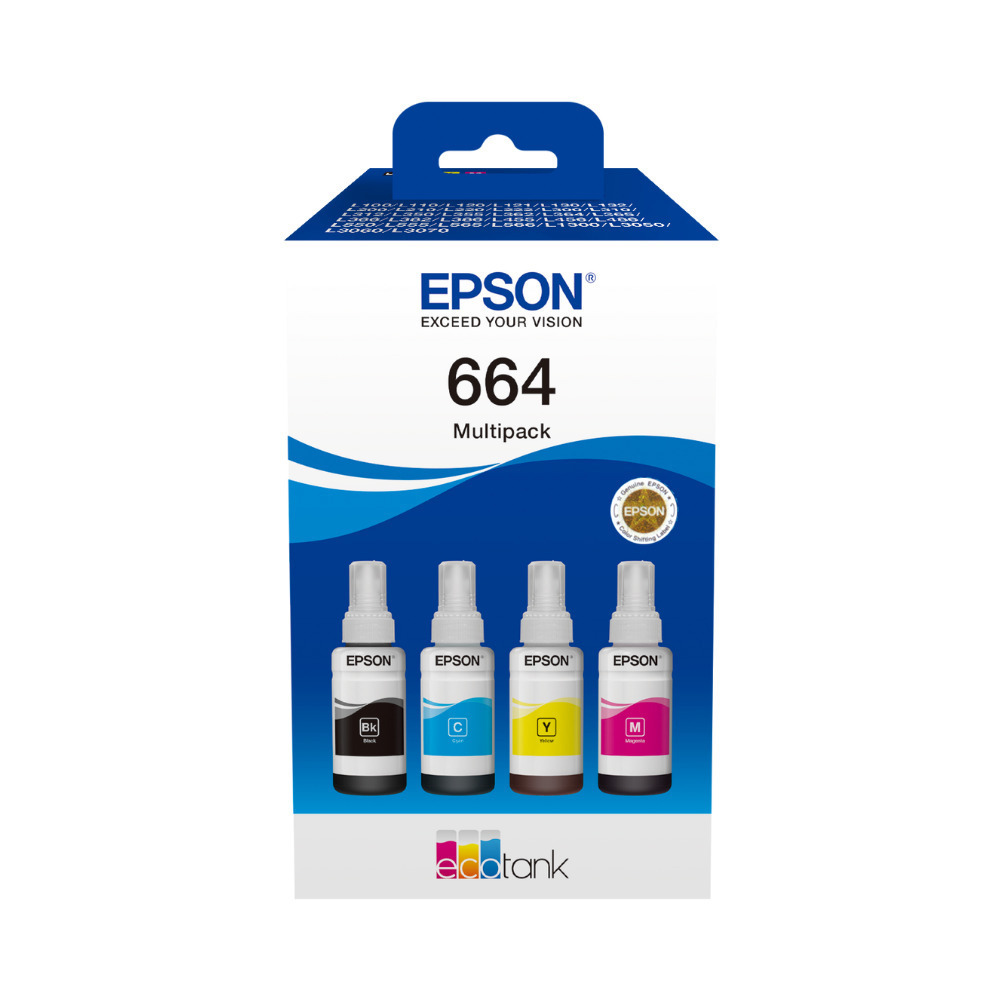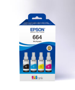 Πακέτο τεσσάρων δοχείων 70ml μελανιού της Epson, τεχνολογίας Inkjet, για υψηλή απόδοση χρωμάτων στις καθημερινές σας εκτυπώσεις, με διάρκεια έως και 4000 σελίδες εκτύπωσης. Συμβατό με τους εκτυπωτές Epson: L550, L355, L210, L300, L110, L800, M200, M105, M100, L800.