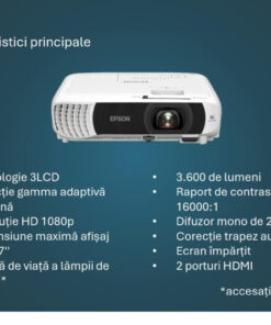 Απολαύστε καθηλωτική ψυχαγωγία και δυναμικές επαγγελματικές παρουσιάσεις με αυτόν τον προσιτό βιντεοπροβολέα λάμπας Full HD. Μικρός και ελαφρύς με εύκολη ρύθμιση, προσφέρει χαρακτηριστικά υψηλής τεχνολογίας και εντυπωσιακή μεγάλη προβολή έως 337 ίντσες. Χάρη στην τεχνολογία 3LCD της Epson με απόδοση έγχρωμου φωτισμού (CLO) 3.600 lumen, θα απολαμβάνετε ζωντανές και λεπτομερείς ρεαλιστικές εικόνες, ακόμη και σε χώρους με έντονο φωτισμό περιβάλλοντος
