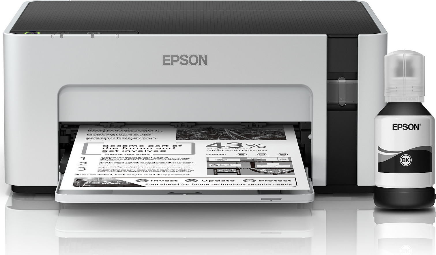 Ανθεκτικός, γρήγορος και ενεργειακά αποδοτικός εκτυπωτής EcoTank με αναπληρούμενο δοχείο μελανιού που μειώνει το κόστος εκτύπωσης. Μια οικονομικά αποδοτική λύση, για εκτύπωση μέχρι 5.000 σελίδες με το συμπεριλαμβανόμενο μαύρο μελάνι.