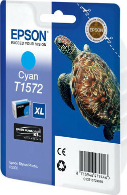 Epson T1572XL Γνήσιο Μελάνι Εκτυπωτή InkJet Κυανό (C13T15724010)