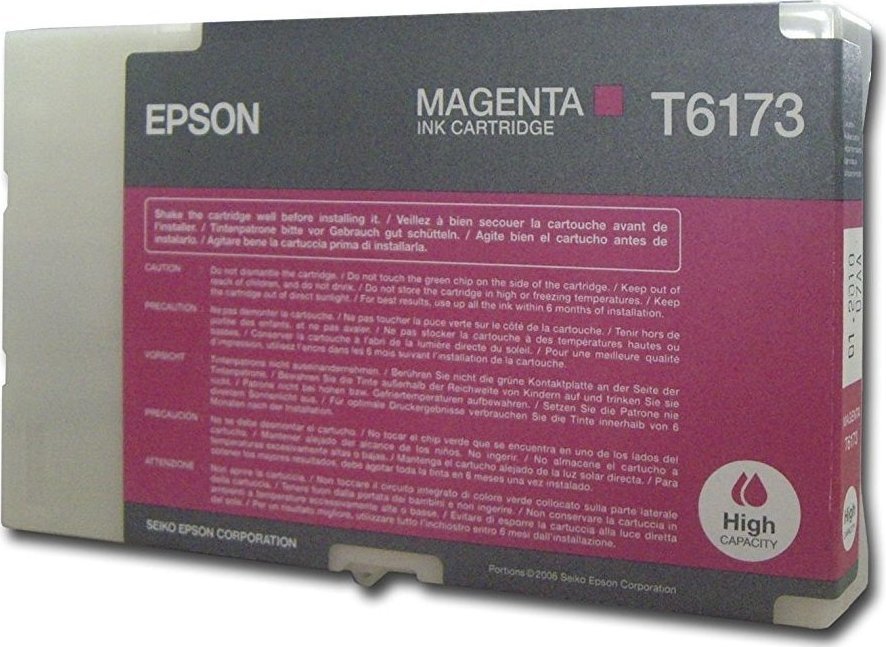 Γνήσιο μελάνια εκτυπωτών Epson T6173 magenta DURABrite Ultra με τεχνολογία αντίστασης σε νερό, μαυρίλα και φθορά. Το μελάνι παρέχει εξαιρετικά αποτελέσματα σε όλους τους τύπους χαρτιού.