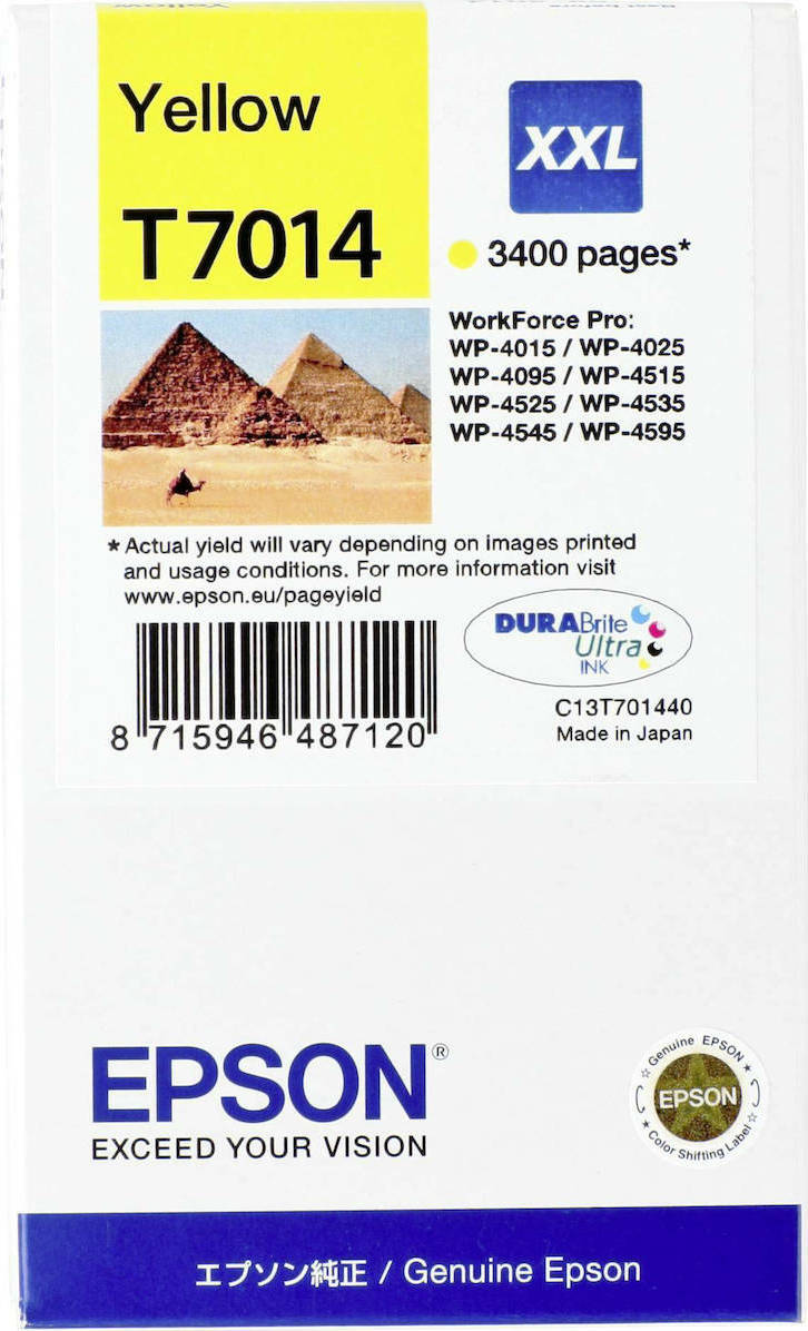 Μονή συσκευασία κίτρινου μελανιού τεχνολογίας Inkjet της EPSON υψηλής περιεκτικότητας για καθημερινές εκτυπώσεις και εξαιρετική απόδοση χρωμάτων.
