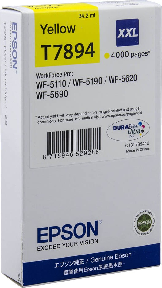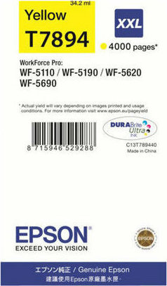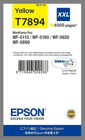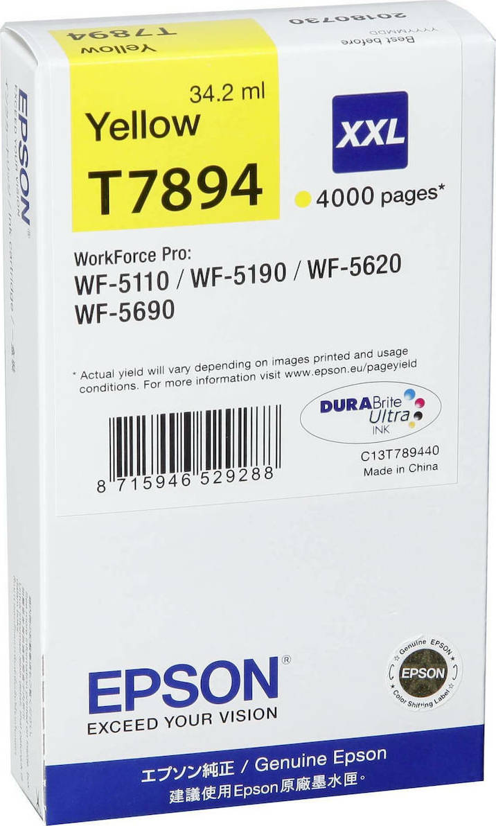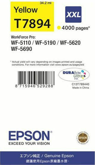 Αυθεντικό Μελάνι Epson T7894XXL με μέγιστο αριθμό σελίδων εκτύπωσης 4000. Εκτυπώστε κείμενα και παρουσιάσεις με την ποιότητα που προσφέρει η Epson.