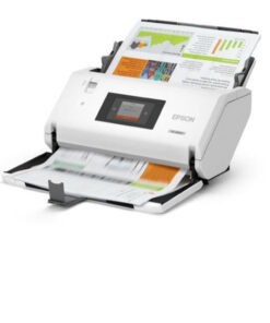 Scanner της εταιρείας Epson, τύπου sheetfed. Το sheetfed scanner είναι εκείνο που διαθέτει ειδική υποδοχή στο πάνω μέρους του για την εισαγωγή της σελίδας που θέλουμε να σκανάρουμε. Διαθέτει λειτουργία αυτόματης τροφοδοσίας εγγράφων, το οποίο σημαίνει ότι ο σαρωτής αρχίζει αυτόματα με την εισαγωγή σελίδων. Με τη λειτουργία σάρωσης διπλής όψης μπορείτε να επεξεργαστείτε και τις δύο όψεις ενός πρωτότυπου εγγράφου με ταχύτητα. Η τροφοδότηση του γίνεται με φύλλα A4.